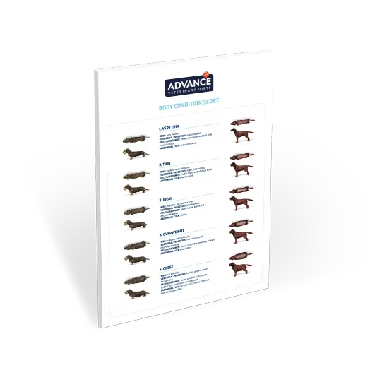 The poster is a very useful tool that allows a very visual orientation of the animal's body condition. It consists of a scale from 1 to 5 which distinguishes various stages between "very thin" and "obese".