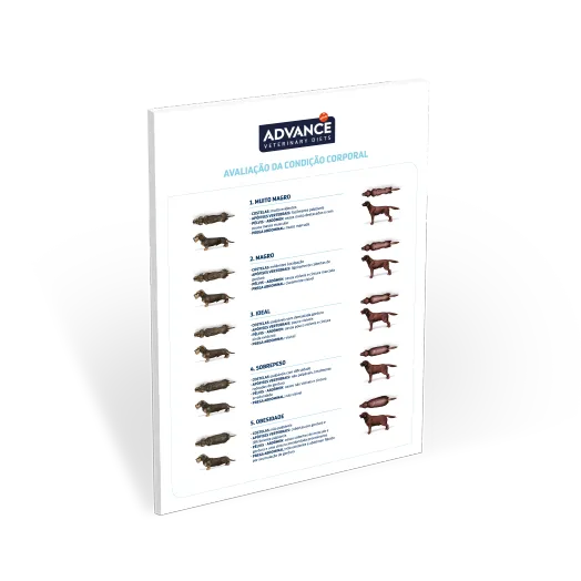 Contém ilustrações orientadoras sobre o estado corporal que permitem explicar facilmente ao dono o estado corporal em que se encontra o seu animal.