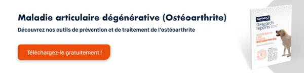 Un régime adapté à l'ostéoarthrite sur le plan nutritionnel aide à atténuer la douleur et améliore la mobilité articulaire . Dans une étude publiée par Affinity dans laquelle 28 chiens atteints d'ostéoarthrite étaient nourris exclusivement avec la formule « Advance Veterinary Diets Articular Care » pendant 42 jours, des améliorations significatives ont été observées concernant les capacités de marche et de saut, la boiterie, l'amplitude de la mobilisation articulaire, l'intensité des douleurs et l'humeur de l'animal. En outre, cette approche nutritionnelle permettrait de réduire voire d'éliminer complètement le traitement par des anti-inflammatoires non stéroïdiens (AINS) .
