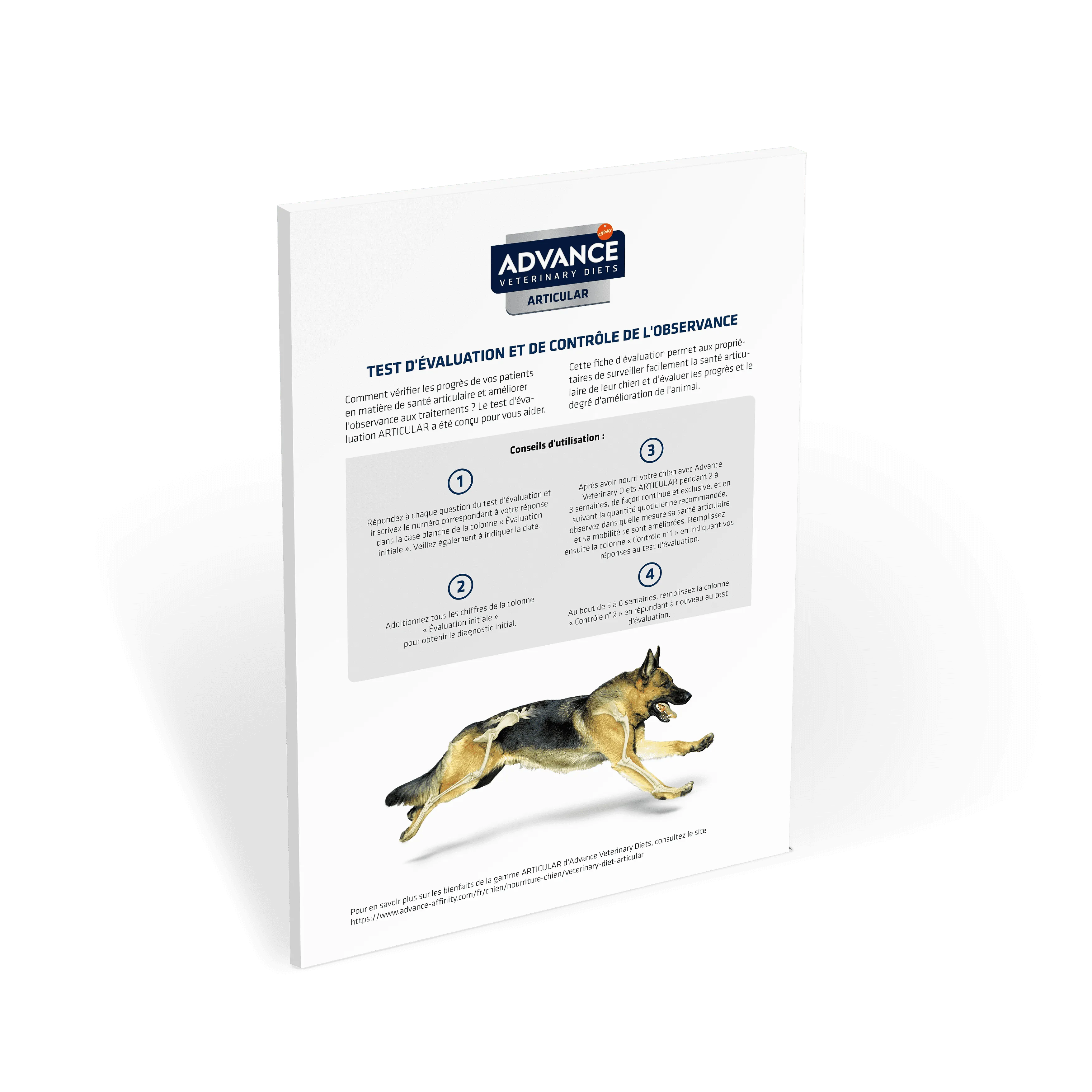 Grâce à cette fiche d'évaluation, le propriétaire du chien peut facilement surveiller la santé articulaire de son chien et également évaluer les progrès et le degré d'amélioration.