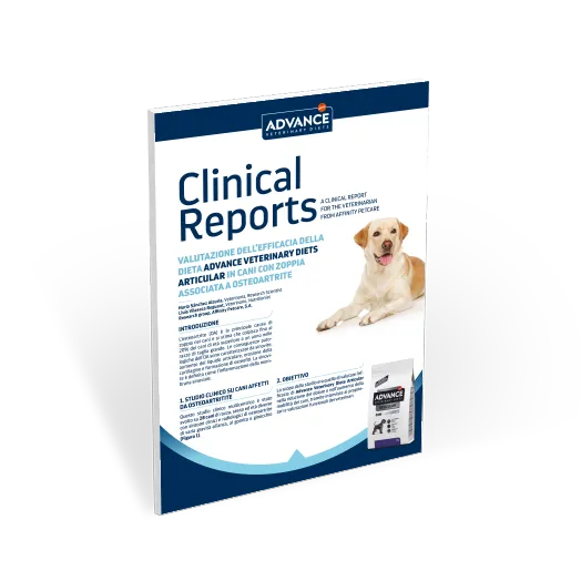 •Studio 3: valutazione della riduzione del peso con la dieta Advance Vet Diets Articular Reduced Calorie nei cani affetti da zoppia e sovrappeso.