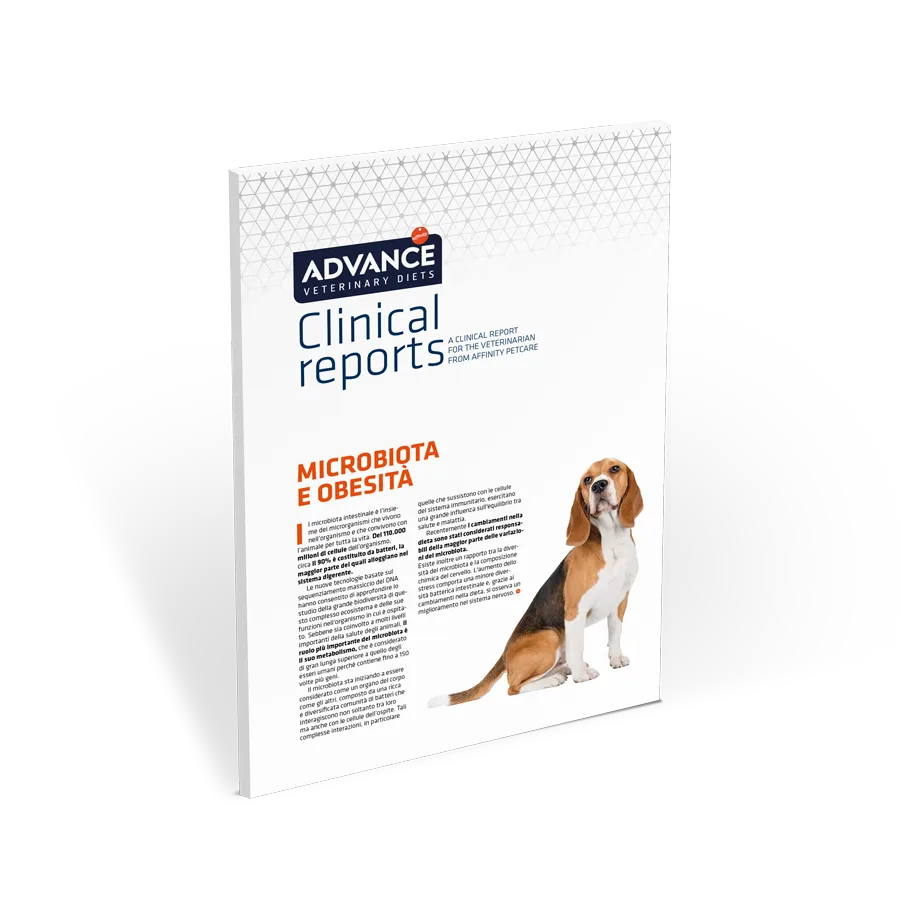 La microbiota svolge un ruolo fondamentale nell'equilibrio tra salute e malattia. Nell'obesità, subisce cambiamenti, diventando meno diversificata e ricca, il che può portare a squilibri significativi. In questo Clinical Report puoi trovare tutte le informazioni relative alla microbiota e alla salute del cane.