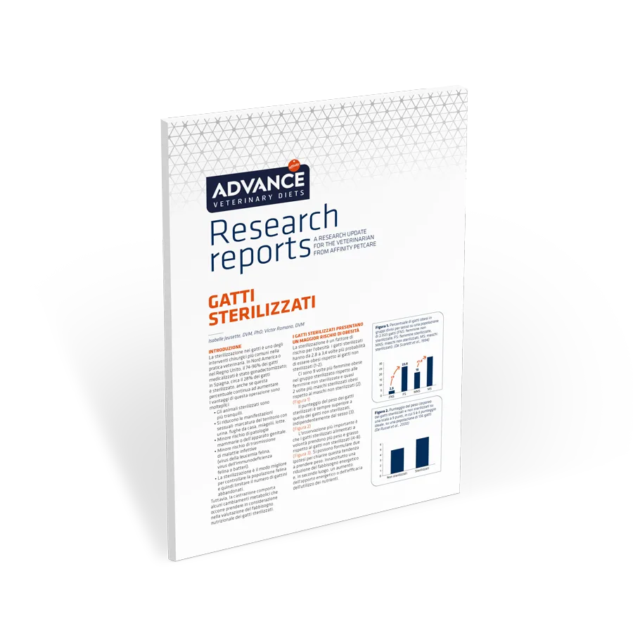 I cambiamenti metabolici che si verificano nel gatto dopo la sterilizzazione possono essere controllati con opportuni interventi sull’alimentazione. In questo report esaminiamo il motivo per cui i gatti sterilizzati hanno un fabbisogno energetico inferiore e le tecniche per prevenire l'obesità.