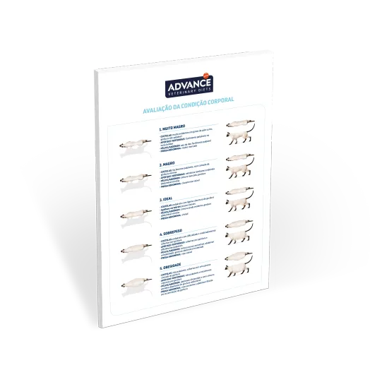O póster é uma ferramenta muito útil que permite avaliar de forma muito visual o estado corporal do animal. Consiste numa escala de 1 a 5 que distingue vários estados entre “muito magro” e “obeso”.